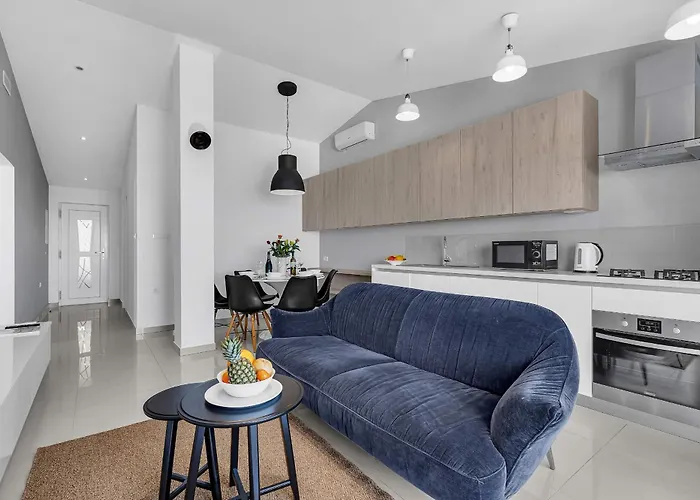 바다의 전망이 있는 Ljubo 아파트는 Jadran Strand에서 가까운 거리에 있습니다. 이 3개의 베드룸 객실은 최대 6명까지 수용할 수 있습니다. 이 숙소에는 무료 주차, 개인 주차, 테라스가 있습니다.